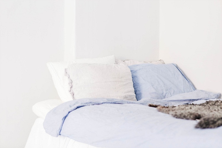 Một chiếc giường ngủ được đặt ngay cạnh bên khu vực phòng khách. Có lẽ bạn sẽ thấy khá tò mò với hình dáng hơi khác lạ của chiếc giường. Thật ra thì phần bên dưới gầm giường là cả một kho lưu trữ đồ đầy tiện dụng. Những chất liệu vải tự nhiên được lựa chọn cho bộ chăn gối đủ thấy được việc quan tâm đến chất lượng giấc ngủ của chủ nhân căn hộ này.